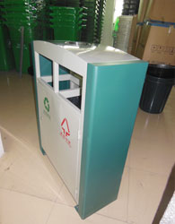 在這些產品中,細細說環(huán)保垃圾桶型號為F74鋼板沖孔垃圾桶,采用優(yōu)質冷軋鋼材料經沖床沖孔、防銹、防腐處理后表面烤漆處理而成,規(guī)格是700*350*870mm,F74鋼板沖孔垃圾桶外觀經典大方,桶身雙分類,分別收集可回收和不可回收兩大類,頂部帶煙灰缸,雙面投遞口,具有耐火安全、抗高低溫、堅固耐用、不易破損的使用特點,是一款適用于工業(yè)園、學校、花園小區(qū)、城市街道等戶外公共場所的。