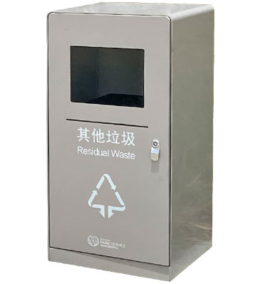 深圳新標準城中村街道社區不銹鋼五分類垃圾桶由有害垃圾、玻璃、金塑紙(為金屬、塑料、紙張的簡稱)、廚余垃圾、其他垃圾這5分類不銹鋼垃圾桶組合而成。其中金塑紙、其他垃圾日常產生量較大,所以分類收集容器也