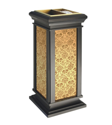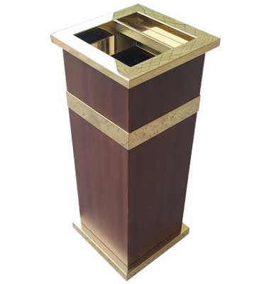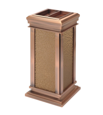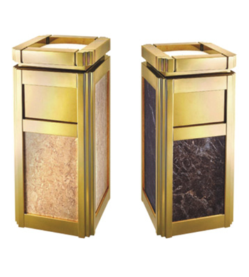 欣方圳為深圳嶺南天潤物業公司提供了一批室內垃圾桶,材質有鈦金類和鐵板噴塑類,外觀精美,使用價值高。 D272皇家座地煙灰桶規格:300*300*685,D295垃圾桶的規格為310*310*740,采用不銹鋼經鍍鈦處理,專業除