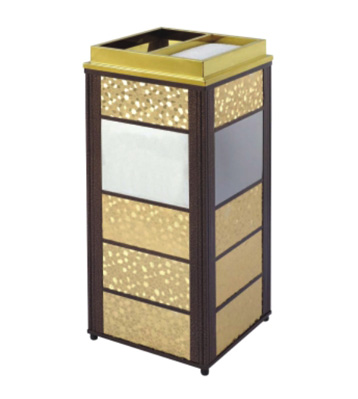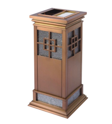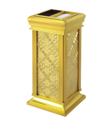 欣方圳為深圳嶺南天潤物業公司提供了一批室內垃圾桶,材質有鈦金類和鐵板噴塑類,外觀精美,使用價值高。 D272皇家座地煙灰桶規格:300*300*685,D295垃圾桶的規格為310*310*740,采用不銹鋼經鍍鈦處理,專業除