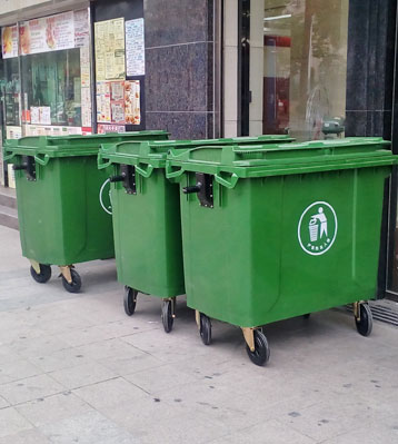 蘇州市政為加強市容環衛責任制落實,督促店家嚴格落實市容環衛責任制,履行市容環衛責任。環衛設備上選用欣方圳垃圾桶廠家660L大型塑料環衛垃圾桶,桶身掛車部分特別加厚可直接上環衛掛車,降低環衛工人勞動強度
