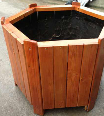 欣方圳木質花箱原材料采用真空泵排除空氣、填充防腐液、加壓滲透、抽真空排出多余防腐液達到先進的防腐防蟲工藝。