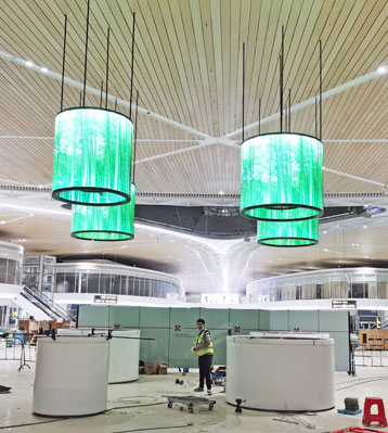 深圳機場衛星廳不銹鋼景觀花箱現場安裝圖