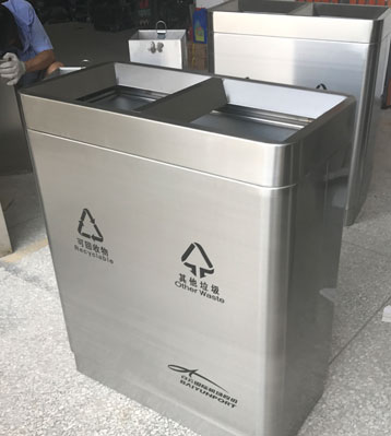 廣州白云機(jī)場直投式不銹鋼分類垃圾箱工廠生產(chǎn)圖