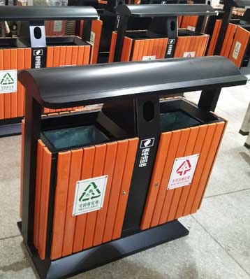 戶外鋼木分類垃圾桶擺放圖