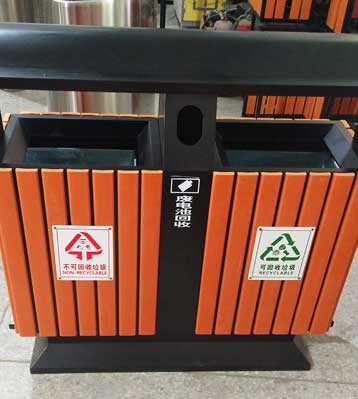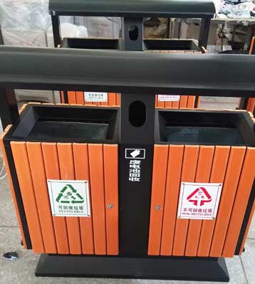 • 產品名稱:戶外馬路鋼木分類垃圾桶